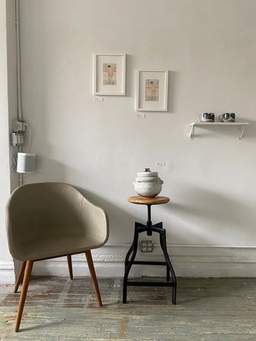 For our first show in the space we were pleased to present works by three artists: Pauline Shin, Heather Loughran, and Erin Clancy. From delicate drawings, soft and intimate portraits, to expertly crafted ceramics with bold glaze-work, we were inspired by the many ways one can depict domesticity through different viewpoints.